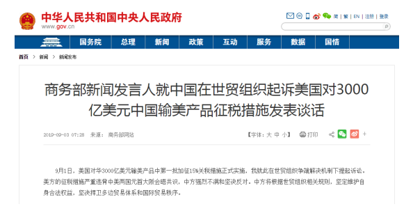 据了解,9月3日,商务部发言人就中国在世贸组织起诉美国事件发表谈话,具体如下: